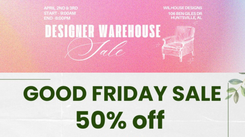 Two Huntsville stores are hosting limited-time spring sales with major discounts on furniture, home décor, and more. Designer Warehouse Sale at Wilhouse Designs A two-day warehouse sale hosted by Andrea of Wilhouse Designs will take place April 2–3 at 106 Ben Giles Drive. The event features discounts of up to 75% on a wide range […]